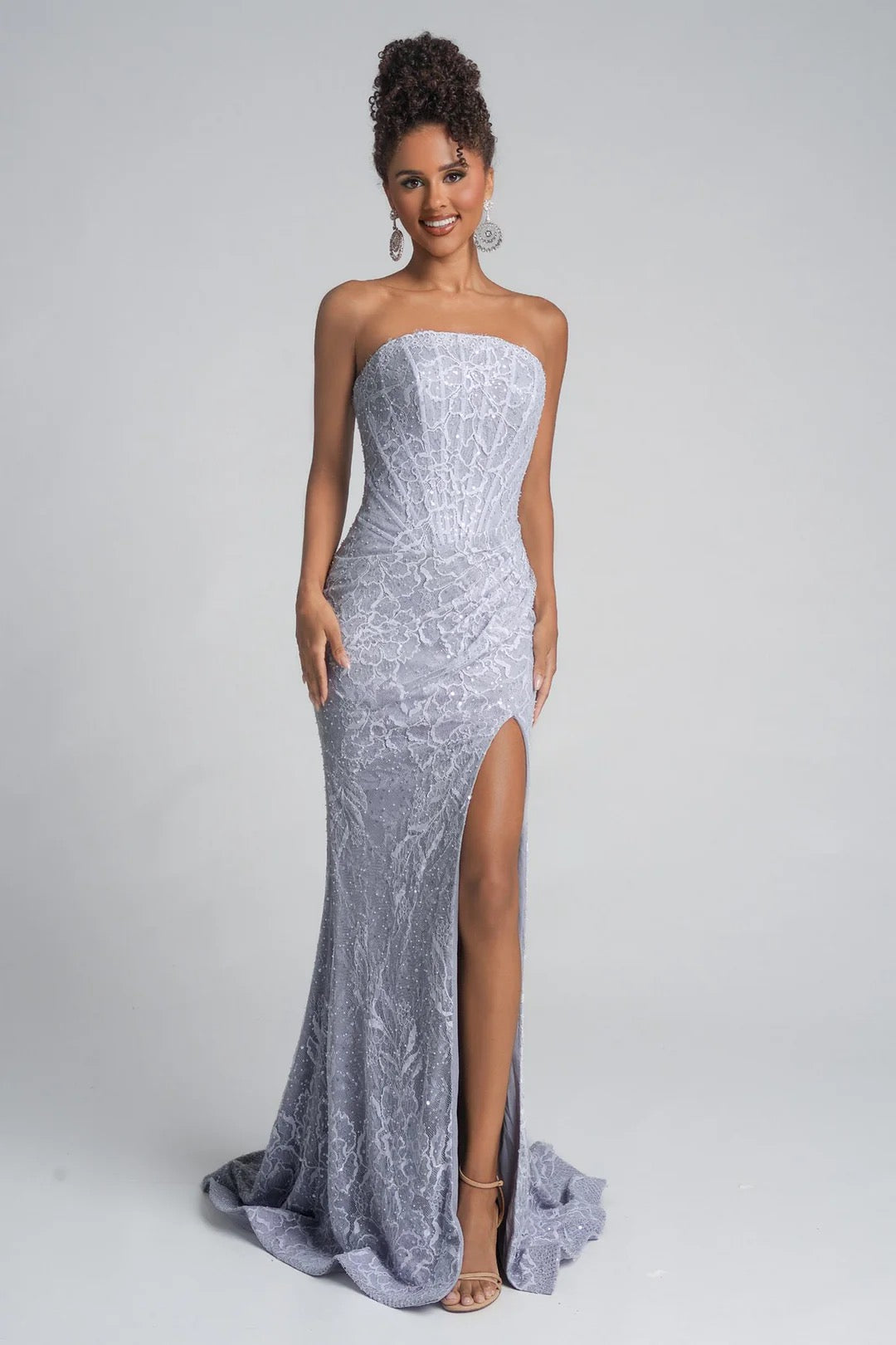 Features: Structured Corset Bodice, High Side Slit